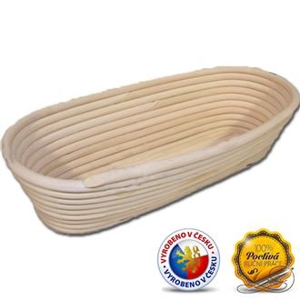 Pedigová ošatka na kynutí chleba tradičního tvaru. Ošatka oválná 0,75 kg. Rozměry ošatek jsou vnitřní.Vrch 28 x 12 cm, dno 23 x 6 cm, výška 7 cm.Certifikát má platnost 3 roky, resp. každé 3 roky jsou ošatky certifikovány. Doporučujeme : - před použitím vysypat moukou. - ošatku nemáčet - po...