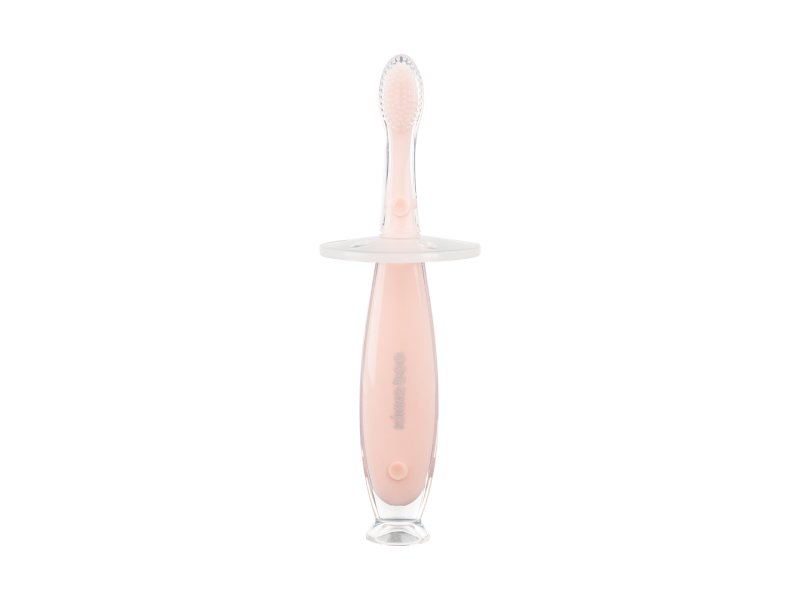 Kartáček na zuby pro nejmenší z jemného, měkkého silikonu má protiskluzovou rukojeť a kruhovou zábranu pro bezpečné čištění prvních zoubků dítěte. Přísavka umožňuje uchycení kartáčku na umyvadlo, když jej nepoužíváte. Rozměry: 12,8 x 4,1 x 4,1 cm Vhodné pro děti od 6 měsíců. przeczytaj całość