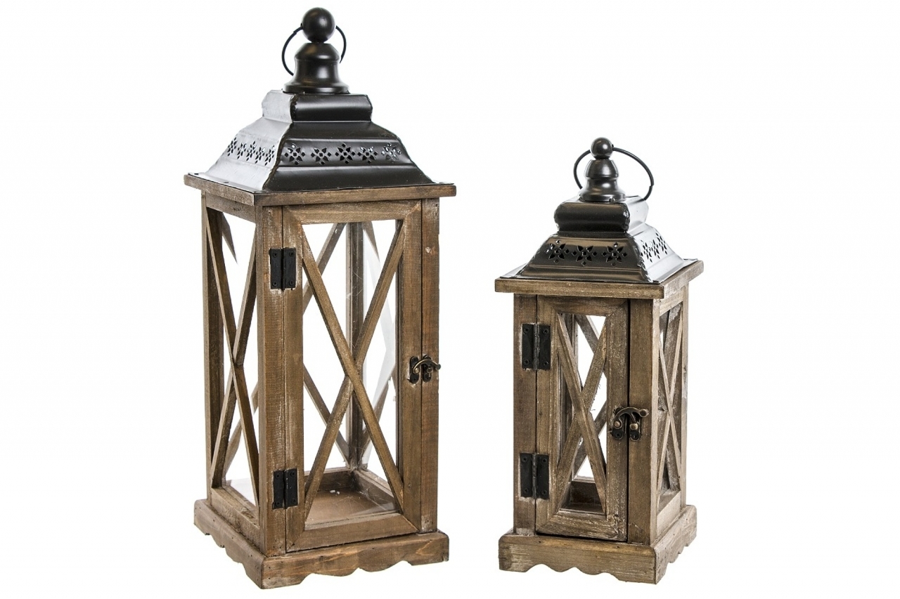 Sada 2 ks dřevěných luceren zpříjemní vaše večerní posezení s přáteli. Do lucerničky můžete dát LED svíčky, které vydrží svítit velice dlouho.Barva: hnědáMateriál: dřevo, kov, sklo (výplň jednotlivých stran)Rozměr:velká lucernavýška 55 cmšířka 20,5 cmdélka 20,5 cmmalá lucernavýška 36 cmšířka 14... przeczytaj całość