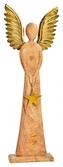 Dřevěný anděl Mango gold s kovovými křídly 70x23x8 cm