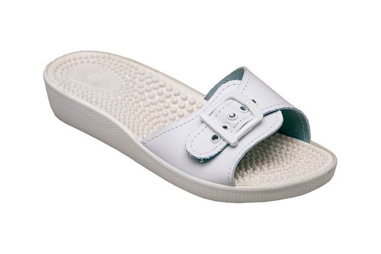 Zdravotní obuv - dámské pantofle,barva: bílá,Podešev - světlá na klínkuMasážní stélka z usněSvrchní syntetický materiálNáš tip:V naší nabídce naleznete další pantofle. przeczytaj całość
