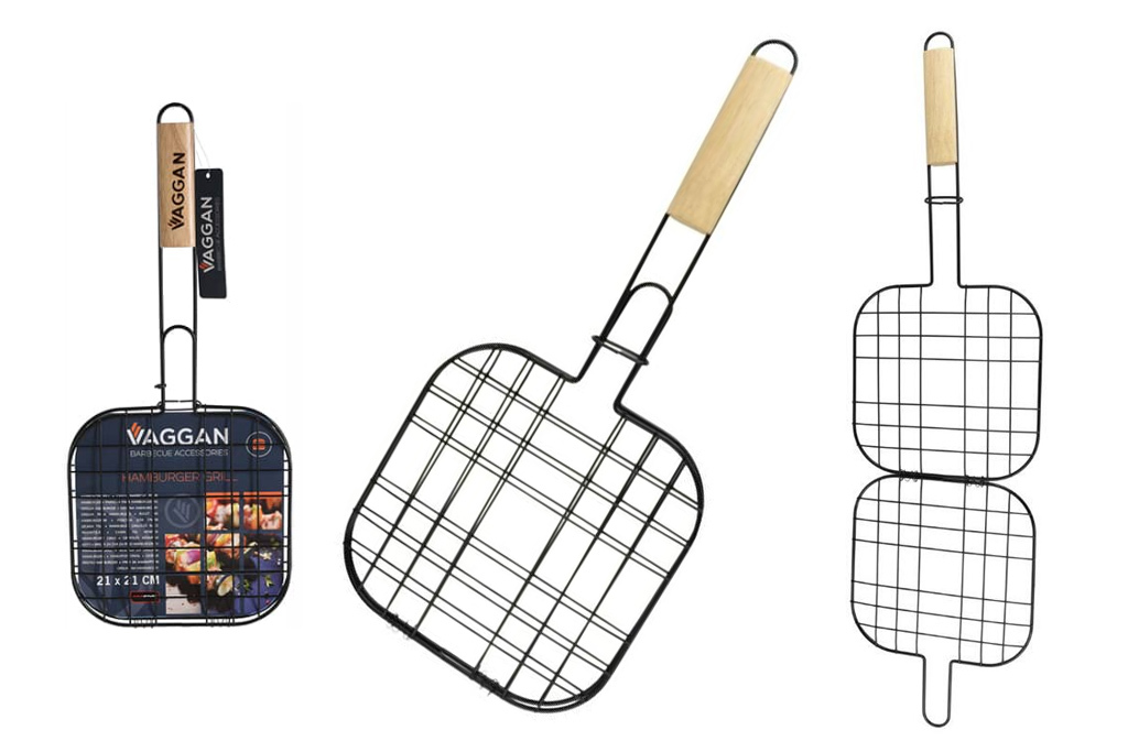 Ciesz się idealnie grillowanymi hamburgerami dzięki naszemu nieprzywierającemu rusztowi do grillowania Vaggan. O wymiarach 49 cm x 21 cm x 21 cm i z elegancką czarną powłoką z naturalnego kauczuku, ten ruszt to świetny wybór na Twoje grillowanie. Nieprzywierająca powłoka rusztu zapewnia łatwe obracanie i zdejmowanie potraw z grilla bez przywierania. Twoje hamburgery będą miały idealną skórkę, a Ty nie będziesz musiał walczyć z przyklejającym się mięsem. To oznacza mniej stresu i więcej radości z grillowania. Półokrągła rączka rusztu zapewnia wygodę i stabilność podczas manipulacji potrawami z grilla. Bezpiecznie i łatwo obracaj oraz przenoś swoje hamburgery na talerze, bez obaw o upadki czy niechciane przesunięcia.