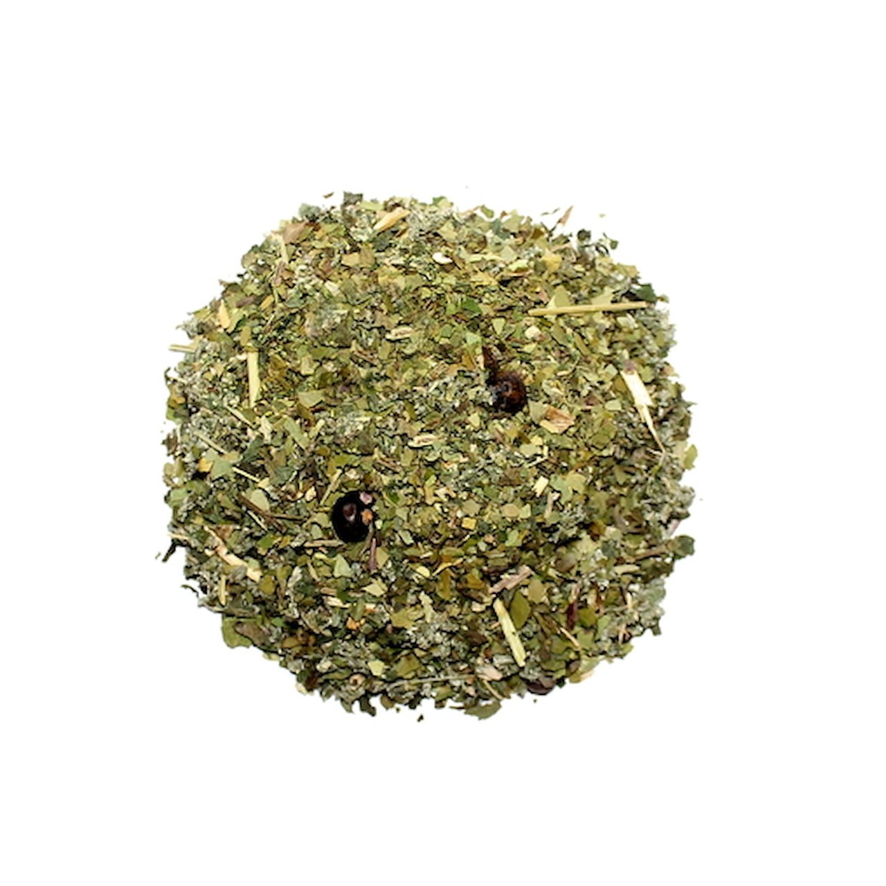 Složení: Maté zelené, maliník list, máta nať, kopřiva nať, jalovec plod, pýr oddenek. Příprava: 1-2 čajové lžičky přelijeme 1/4 l vroucí vody a necháme 3-5 min. odstát. Nálev připravujeme vždy čerstvý, pijeme 2x denně. Dle současné legislativy EU u bylinek a bylinných produktů nesmíme uvádět podrobnější informace, které by v nás mohly vzbudit dojem zdravotního nebo léčebného účinku bylin