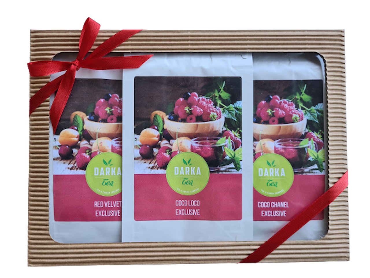 Dárková kazeta Ovocný polibek obsahuje tři druhy čajů z řady Exclusive: 80 g przeczytaj całość