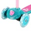 Przestronna platforma oferuje wystarczająco miejsca (29 x 11,5 cm) dla obu stóp i jednocześnie uczy dziecko przyjmowania prawidłowej pozycji do jazdy na hulajnodze. Całoplastikowa platforma w miejscu na buty jest pokryta antypoślizgową nakładką w zabawnym wzorze. Boki platformy są wyposażone w kolorowe, migające diody LED, które zasilane są trzema bateriami AAAr (AAA/LR03) - należy je dokupić osobno.