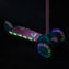 Przednie kółka o średnicy 125 milimetrów i tylne kółko o średnicy 100 milimetrów są wyposażone w kolorowe diody LED. Świecące diody LED pełnią ciekawy element wizualny, zwiększają zainteresowanie dzieci oraz poprawiają widoczność hulajnogi np. o zmierzchu. Kółka świecą automatycznie podczas ich obracania. Dodatkowo kółka są osadzone na łożyskach ABEC 5 dla płynnej jazdy. Tylny błotnik służy jako hamulec nożny do bezpiecznego zatrzymania hulajnogi.