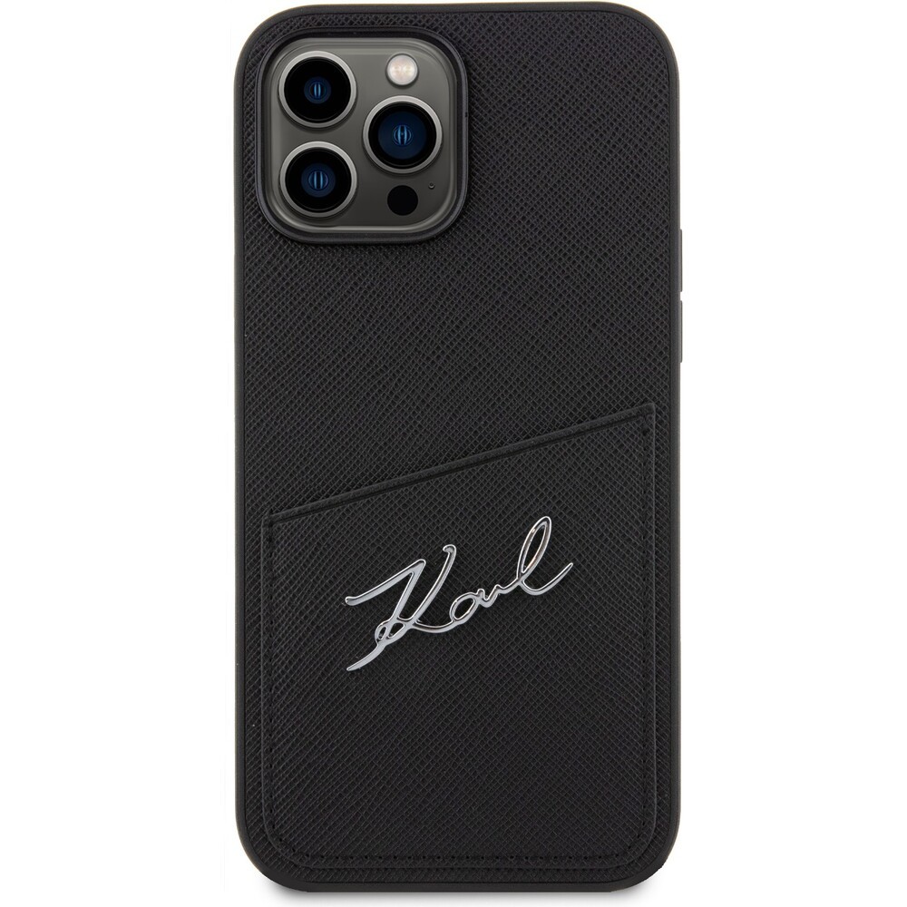 Karl Lagerfeld Saffiano Card Slot Metal Signature kryt iPhone 14 Pro Max černý