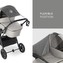 Osłona przeciwsłoneczna jest wyposażona w ochronę UV 50+ i mocuje się do wózka za pomocą gumowego brzeżka oraz dwóch sznurków. Osłonę można w razie potrzeby wysunąć do przodu lub zwinąć z powrotem. Zwinięcie ułatwia też dostęp do Twojego dziecka.