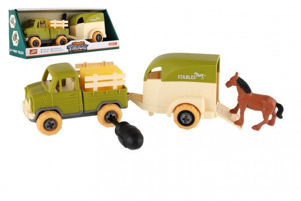 Krásné nákladní auto s vlekem na koně, které odveze Vašeho koníka kamkoli. Sada je šroubovací, takže je i ideální hračkou pro rozvoj manuální zručnosti a logického myšlení. Pro zvídavé děti je zábavou auto rozšroubovat a zase složit zpět. Auto je na volný chod.