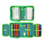 31-dielny plátený peračník s dvojitou klopou a uzatváraním na zips. Obsahuje 10-farebnú sadu popisovačov, 1 guľôčkové pero, 2 ceruzky, 12-farebnú sadu pasteliek, malý trojuholník, rovné pravítko dĺžky 17 cm, gumu, strúhadlo, v jednej klope je umiestnený rozvrh hodín a v druhej malá násobilka.... przeczytaj całość