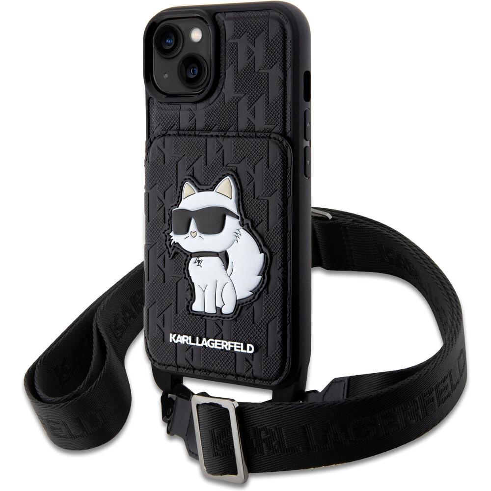Karl Lagerfeld Saffiano Monogram Crossbody Choupette NFT Kryt pro iPhone 14 černý