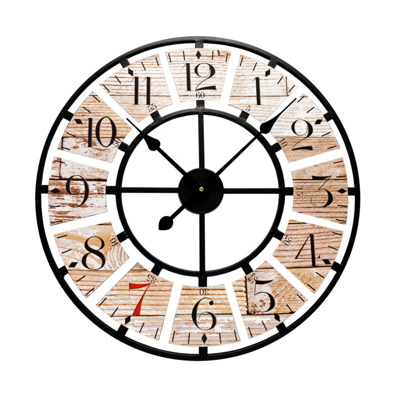 analogové nástěnné hodinyčas řízený krystalemtichý chodmateriál kovØ ciferníku 580 mmnapájení na 1 ks baterie typ AA 1,5 V (tužková, není součástí balení)ciferník světlý se vzorem dřeva, číslice černé, sedmička červená przeczytaj całość