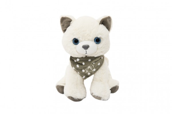 Kočka sedící se šátkem plyš 23cm v sáčku 0+