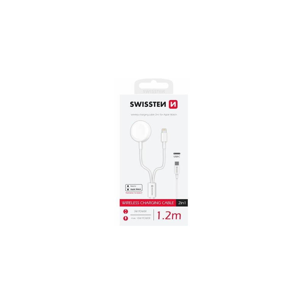 Swissten nabíjecí magnetický kabel 2v1 pro Apple Watch Lightning USB-C 1.2 m
