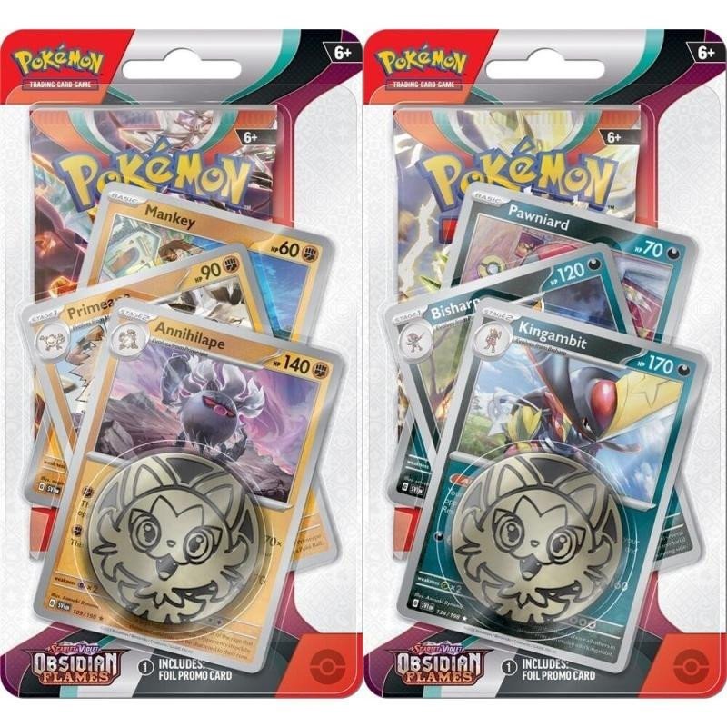 Pokémon Obsidian Flames jest trzecim zestawem z serii Pokémon Scarlet and Violet w 2023 roku. Kontynuuje poprzednie zestawy z bloku Scarlet and Violet i rozszerza region Paldea dla graczy. Specjalne opakowanie z boosterem z serii Obsidian Flames oraz linią ewolucyjną Mankey, Primeape i Annihilape lub Pawniard, Bisharp i Kingambit. Szukasz małego i niedrogiego prezentu, w którym oprócz boostera będą też jakieś karty? W takim razie wybierz ten Premium Checklane Blister, w którym oprócz boostera znajduje się moneta do rzucania i trzy karty Pokémon. Zawartość opakowania: • booster zawiera 10 losowych kart • 3x karta z tematycznej linii ewolucyjnej (motywu nie można wybrać, wysyłamy losowo) • 1x metalowa moneta do rzucania związana z daną edycją. Booster zawiera 10 losowych kart z gwarancją co najmniej jednej karty rzadkiej (tj. co najmniej holo rare). Ten pakiet daje graczom możliwość rozbudowy i ulepszenia talii lub kolekcji o nowe karty. Nadaje się zarówno dla początkujących, jak i doświadczonych graczy.