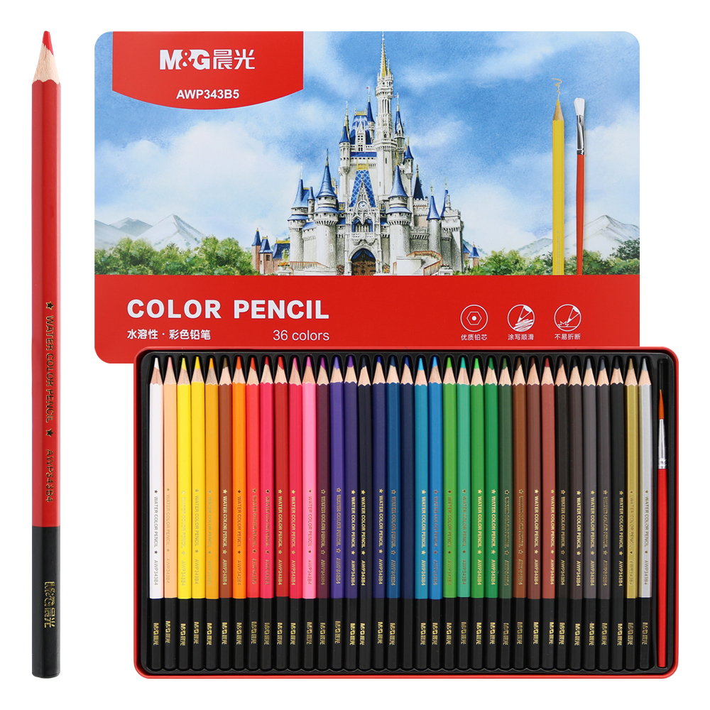 Pastelky akvarelové M&G v plechovém boxu, sada 36 ks