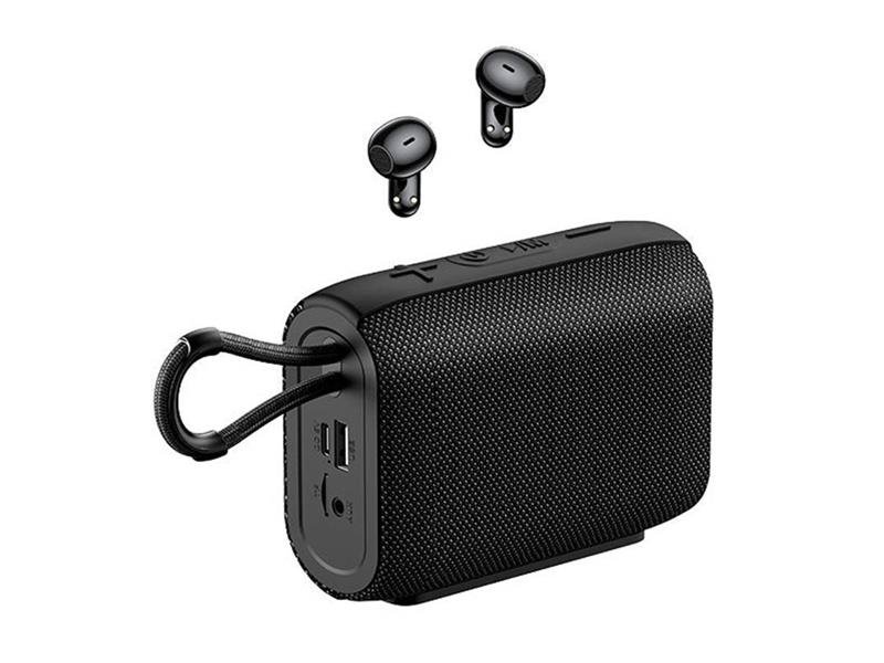 Sada obsahuje bezdrátový reproduktor a sluchátka TWS. Zařízení využívá Bluetooth 5.3 a poskytuje stabilní signál až na vzdálenost 10 m. Dále nabízí USB, AUX a slot pro TF kartu. Pohodlná tlačítka navíc usnadňují ovládání.