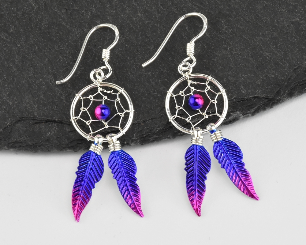 Stříbrné visací náušnice, Lapač snů fialovo-růžové