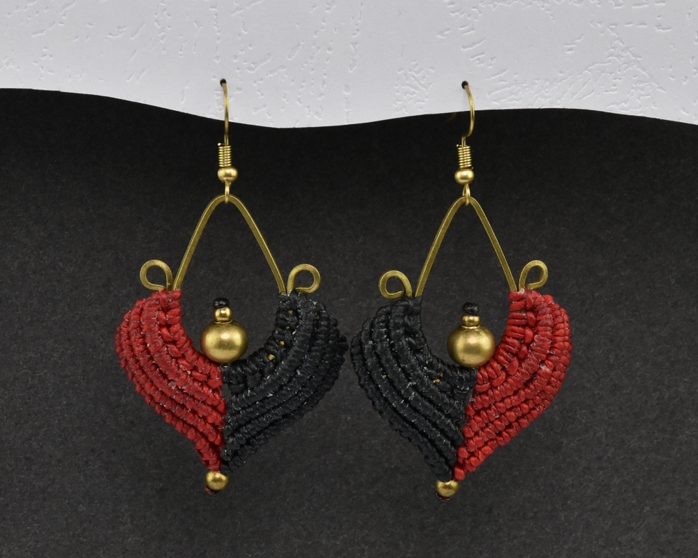 Ručně vyrobené drhané náušnice z voskovaného provázku, na kovovém základu, dozdobené drobnými preličkami.Každý pár těchto naušnic je jedinečný originál.Materiál: kov, voskovaná bavlnkaRozměry: 5 x 3,5 cm przeczytaj całość