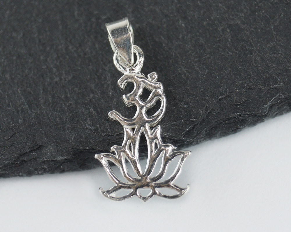 Stříbrný přívěsek Óm a lotosový květ - 24 mm