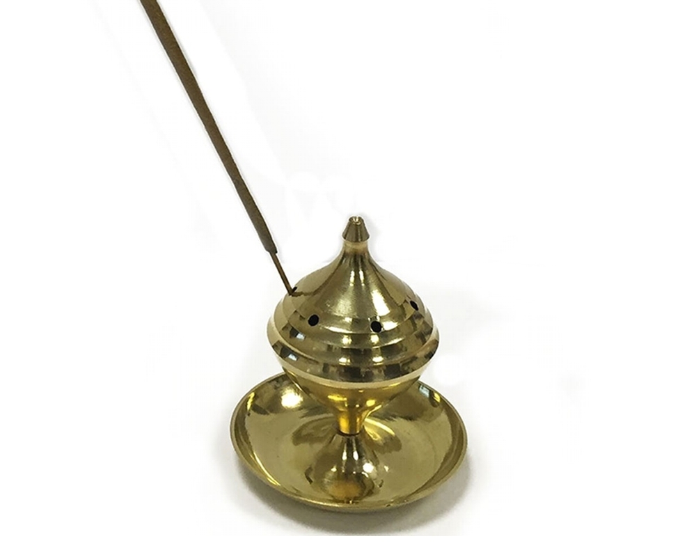 Tradiční indický stojánek - kadidelnice s otvory po obvodu na 5 vonných tyčinek. Průměr: 6,5 cmVýška: 7,5 cm przeczytaj całość
