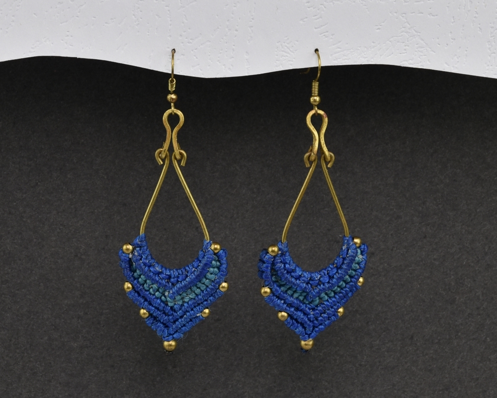 Ručně vyrobené drhané náušnice z voskovaného provázku, na kovovém základu, dozdobené drobnými preličkami.Každý pár těchto naušnic je jedinečný originál.Materiál: kov, voskovaná bavlnkaRozměry: 6,5 x 3 cm przeczytaj całość