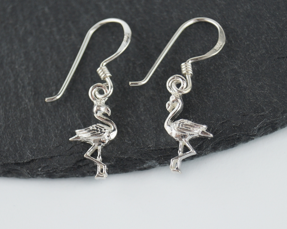 Stříbrné visací náušnice, Plameňák, 17 mm