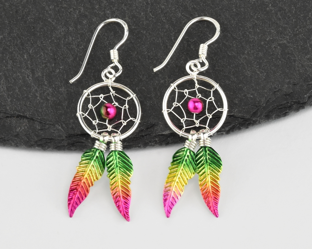 Stříbrné visací náušnice, Lapač snů multicolour