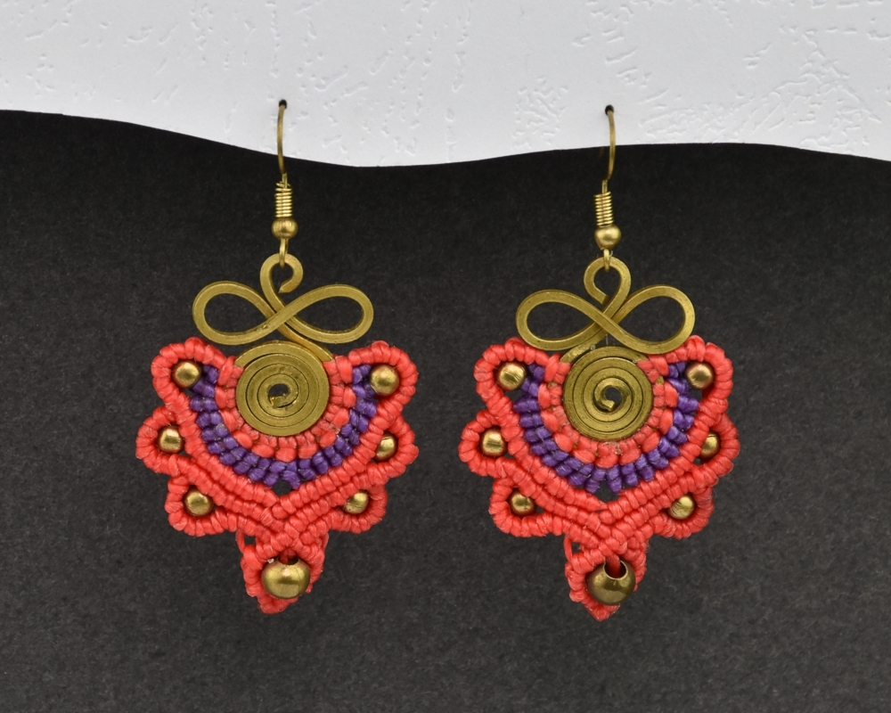 Ručně vyrobené drhané náušnice z voskovaného provázku, na kovovém základu, dozdobené drobnými preličkami.Každý pár těchto naušnic je jedinečný originál.Materiál: kov, voskovaná bavlnkaRozměry: 5 x 3,5 cm przeczytaj całość