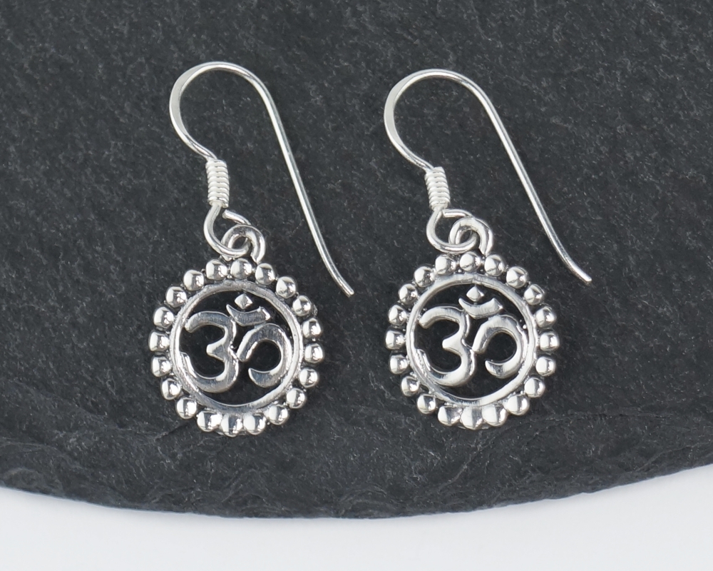 Stříbrné visací náušnice ÓM v kruhu