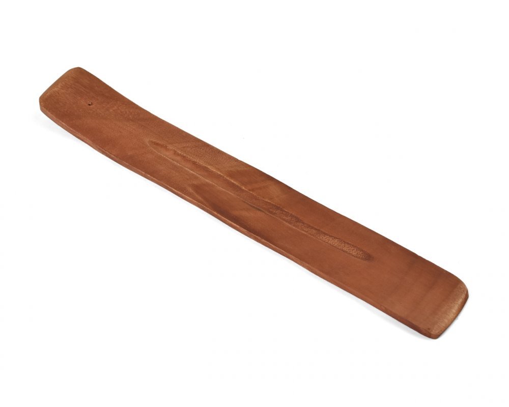 Drewniana brązowa podstawka na kadzidełka. Długość ok. 26 cm, szerokość ok. 3,5 cm. Kolor drewna może się różnić, produkt wykonany ręcznie. przeczytaj całość