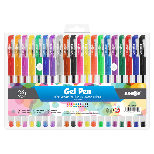 Pero gelové - sada 20 ks, glitter/fluo/classic