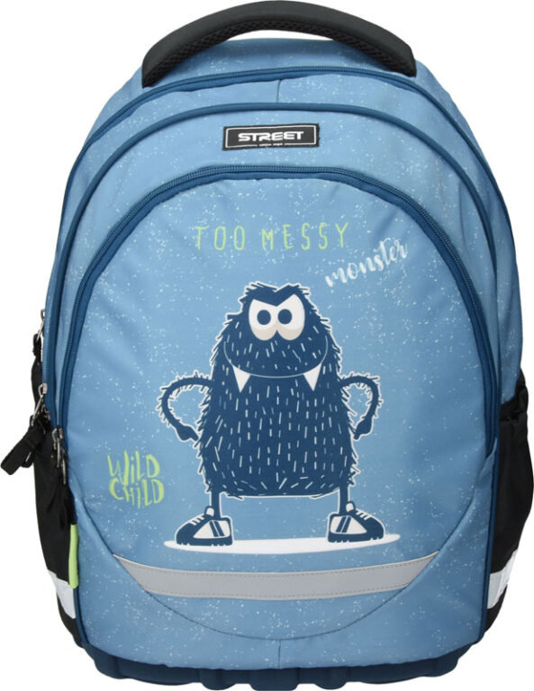 Ergonomický školní batoh s měkkými vyztuženými ramenními popruhy a zádyPevně vyztužené dnoBoční kapsy na láhev s vodouReflexní prvky pro lepší viditelnost100% bez PVC (kromě spon a reflexních prvků).