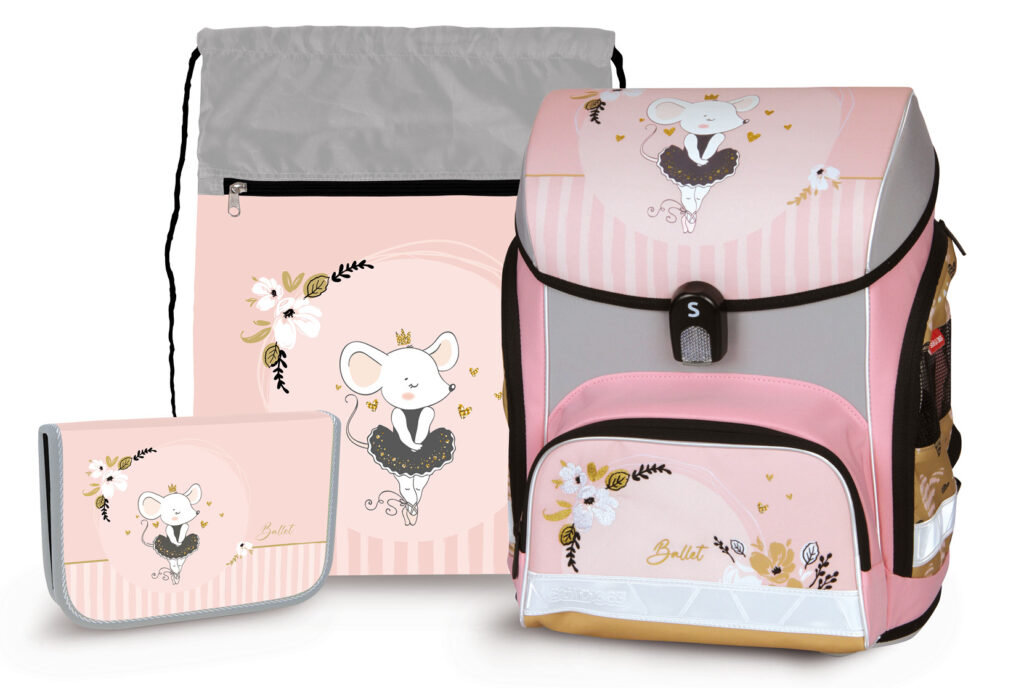 Školní set obsahuje:1. Školní aktovka - kvalitní, ergonomicky tvarovaná odlehčená školní aktovka je vybavena reflexními prvky a anatomicky tvarovanými zády s pevnou konstrukcí.2. Školní penál jednopatrový, prázdný s dvěma chlopněmi, o rozměru š. 19,5 x v. 3,5 x h. 13 cm3. Školní sáček na cvičky...