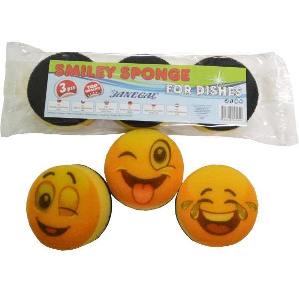 Gąbka do naczyń z bardzo skuteczną, trwałą warstwą ścierną odporną na zużycie. Wesoły nadruk emotikonów. Średnica 7,9 cm i wysokość 3 cm. Opakowanie zawiera 3 sztuki w kolorze żółto-czarnym. EAN przeczytaj całość