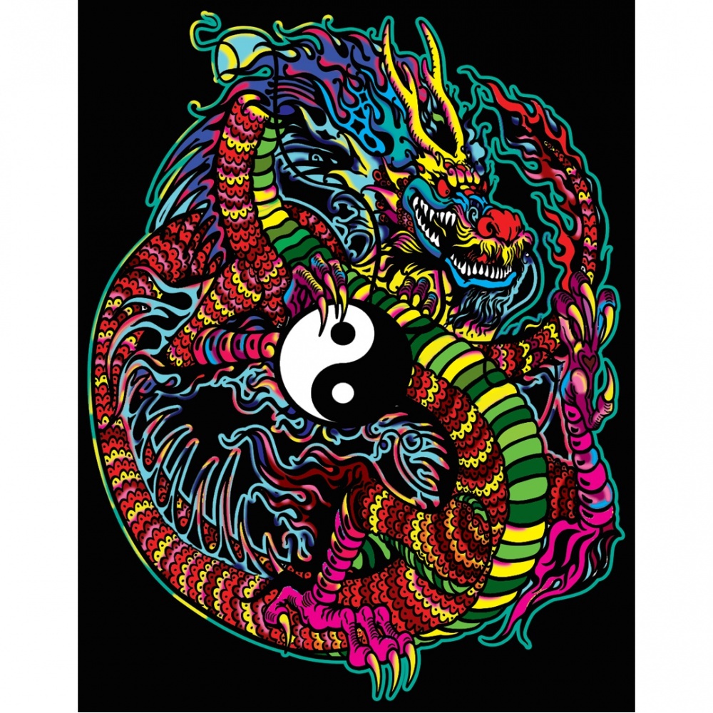 VELKÝ SAMETOVÝ OBRÁZEK DRAK YIN A YANG 47X35CM.Velký sametový obrázek k vybarvení, motiv koňské hlavy. Vybarvovací šablona je ze sametu, který usnadňuje vybarvení. Obrázek můžete vybarvit fixami, pastelkami nebo voskovkami. Okraje motivu jsou přesně vymezeny sametem a zabraňují přetahování...