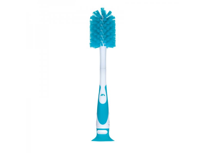 Kartáč na láhve 2v1 má v rukojeti uložený malý kartáček na čištění saviček. Díky přísavce kartáč můžete postavit na kuchyňskou linku, kartáč díky tomu lépe schne a zároveň je chráněn před znečištěním.Neobsahuje BPA.Vhodné pro použití od narození.  przeczytaj całość