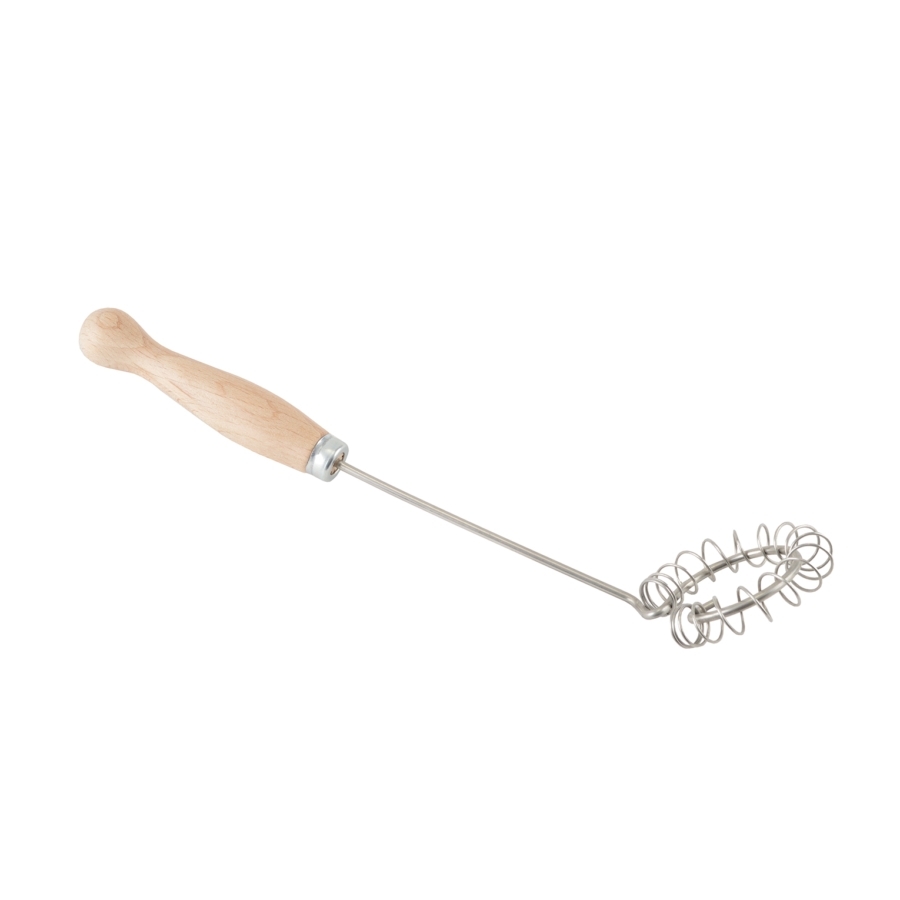 Nierdzewna skośna trzepaczka/ubijaczka z drewnianą rączką. Długość 26,5 cm, szerokość trzepaczki 6 cm. Kolor rączki zależny od dostępności magazynowej. Wyprodukowano w UE. Nie nadaje się do mycia w zmywarce. EAN 5999563647348 przeczytaj całość