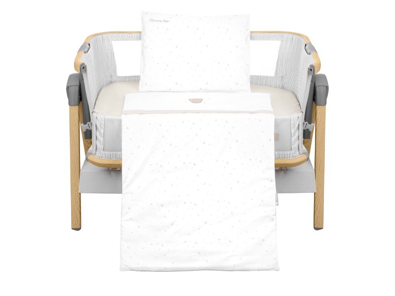 Kompletní ložní sada do malé postýlky nebo kolébky obsahuje polštářek, peřinku, povlečení na polštářek a peřinku a natahovací prostěradlo. Povlečení je vyrobeno z jemné, prémiové 100% bavlny s Oeko-Tex® certifikací. Rozměry: peřinka a potah na peřinku: 55 x 85 cm, polštářek a potah na polštářek:...