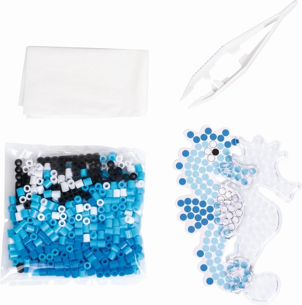 Opakowanie zawiera koraliki do zaprasowywania, z których mozna wykonać dwa motywy na dołączonej podkładce. Zestaw zawiera również pęsetę, papier do zaprasowywania oraz instrukcję. przeczytaj całość