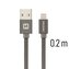 Kabel z wysokiej jakości tekstylnym oplotem, odpowiedni do podłączenia urządzeń z wtykiem Apple Lightning do komputera. Obsługuje ładowanie prądem do 3 A.