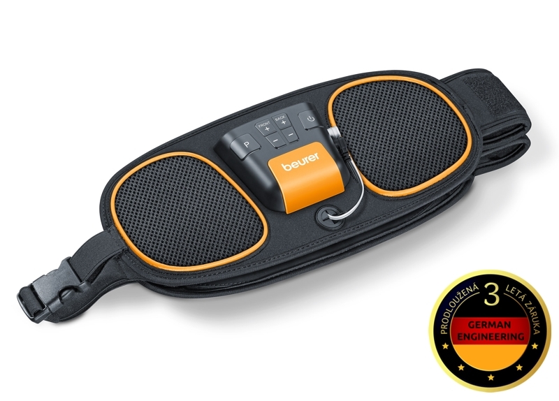 BEURER EM 39 to specjalny pas zaprojektowany do celowanego wzmacniania mięśnia prostego brzucha oraz dolnych partii mięśni grzbietu. Dzięki czterem trwałym elektrodom z przewodzącego węgla (2 na brzuch i 2 na plecy) zapewnia wygodną i skuteczną stymulację mięśni bez potrzeby stosowania żelu czy wymiany elektrod. Ergonomiczny kształt pasa dopasowuje się do obwodu brzucha od około 75 do 130 cm, co gwarantuje komfort noszenia podczas treningu lub regeneracji.
