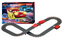 Tor wyścigowy Carrera GO!!! o długości 4,3 m z samochodami Zygzak McQueen i Jackson Storm zawiera rampę do skoków, odcinki proste, zakręty, mostek, moduł zasilający na baterie oraz inne elementy. Tor jest kompatybilny z samochodami i elementami GO!!!. Do modułu zasilającego można włożyć albo baterie, albo zasilacz (kod 61531 - brak w zestawie)