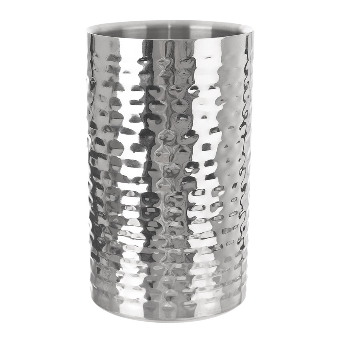 Dvoustěnná nádoba na chlazení láhví s vínem, sektem a různými nealko nápoji… pomůže udržet nápoj při servírování delší dobu ve správné teplotě. Jednoduše vložte láhev s nápojem do nádoby. Můžete ji také naplnit ledem. Stylový doplněk na slavnostně prostřený stůl. Jemný plastický dekor. Materiál: nerezová ocel. Rozměry: pr. 12 cm, v. 20 cm. Není vhodná do myčky.