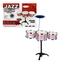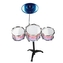 Set bicí. Jeho obsah je 3 bubny různých velikostí, 1 činel, 2 malé hůlky, taburetka. Rozměry produktu jsou velký buben-21x13x21cm, malý buben-17x10x17cm, židle-27x25cm. Souprava je určena pro děti ve věku 3+. przeczytaj całość
