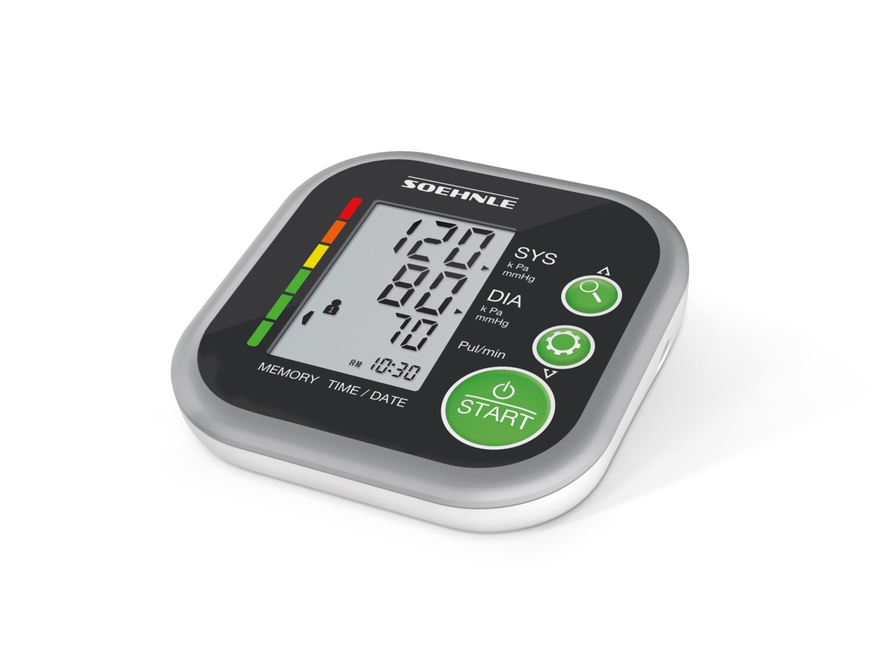 Plně automatický monitor tlaku a srdečního tepu na horní část paže. Detekuje nepravidelný puls, pohybový senzor, zobrazí průměrnou hodnotu posledních 3 měření, 60 paměťových oken až pro 2 uživatele zvlášť, zobrazení naměřených hodnot v tabulce dle Světové Zdravotnické organizace (WHO), LCD...