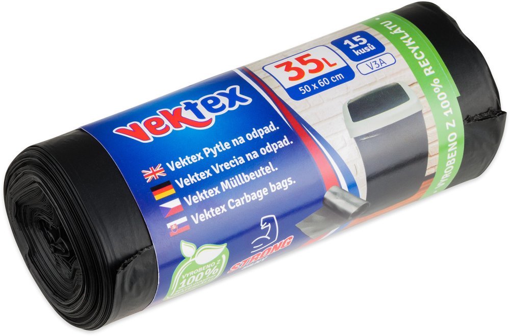 Extra  pevné pytle na odpadObjem  35 litrůBalení obsahuje  15 kusůBarva  černá o síle  22 mikronů Rozměry: šířka 50 cm, výška 60 cm Popis Vektex V3A 15 kusů extra  pevných pytlů na odpad o objemu  35 litrů, barva černá, síla 22 mikronů, rozměry: šířka 50 cm, výška 60 cm.  przeczytaj całość