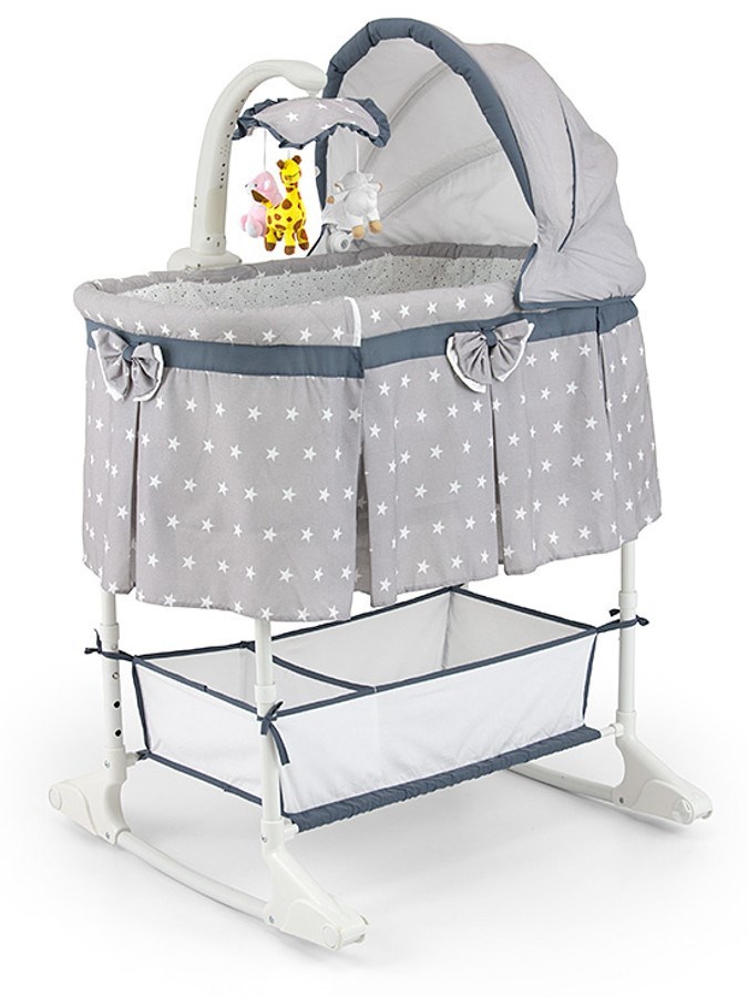 Dětská multifunkční kolébka a postýlka v jednom Milly Mally.Charakteristika:- nastavení výšky do 4 poloh- odnímatelná, regulovatelná stříška- kolotoč s veselými plyšovými hračkami, melodií a noční lampičkou- možnost regulace intenzity světla lampičky a hlasitosti přehrávaných melodií- včetně...