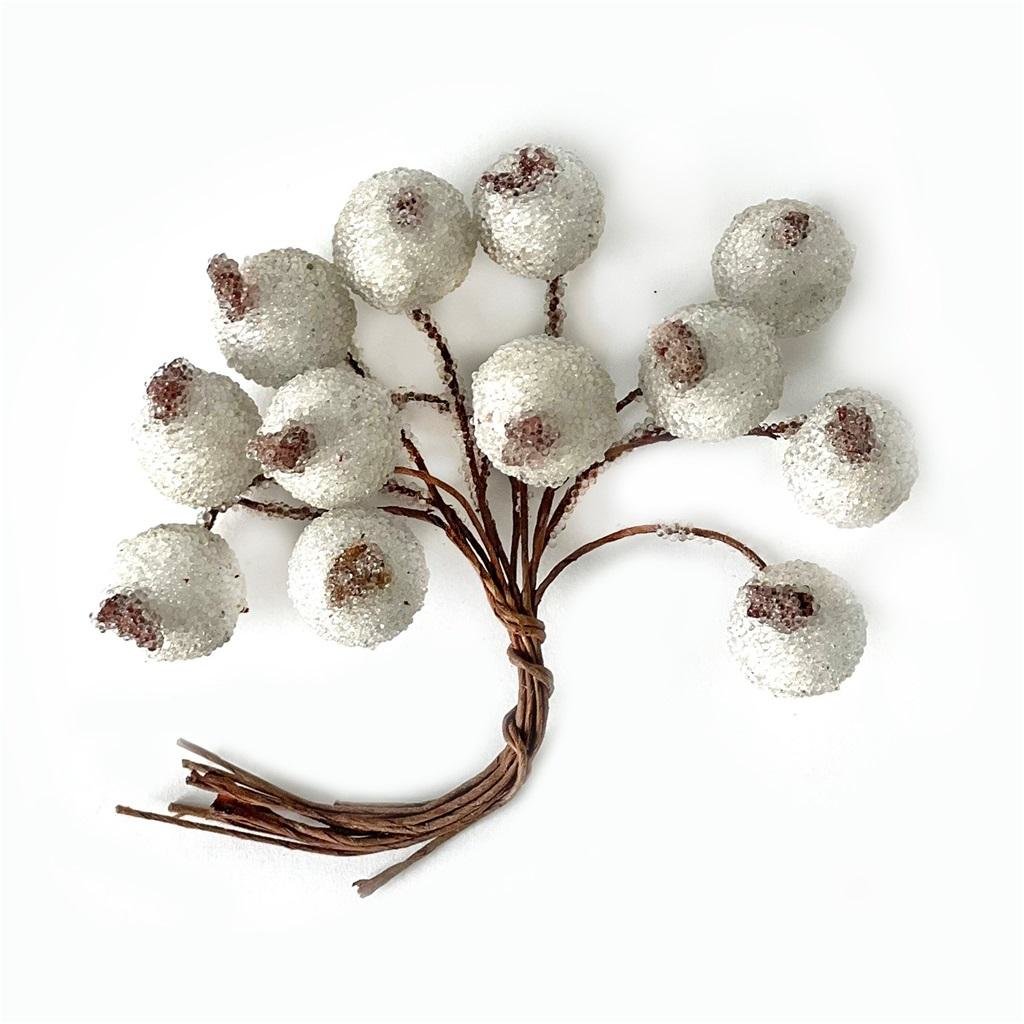 Szronione jagody to wyjątkowy dodatek do wszelkich projektów typu home decor, pakowanie prezentów, scrapbooking oraz kids, świetnie sprawdzą się we florystyce. Wzbogacą oraz nadadzą blasku dekoracjom świąteczno-zimowym. Jagody mocowane na druciku, przeczytaj całość