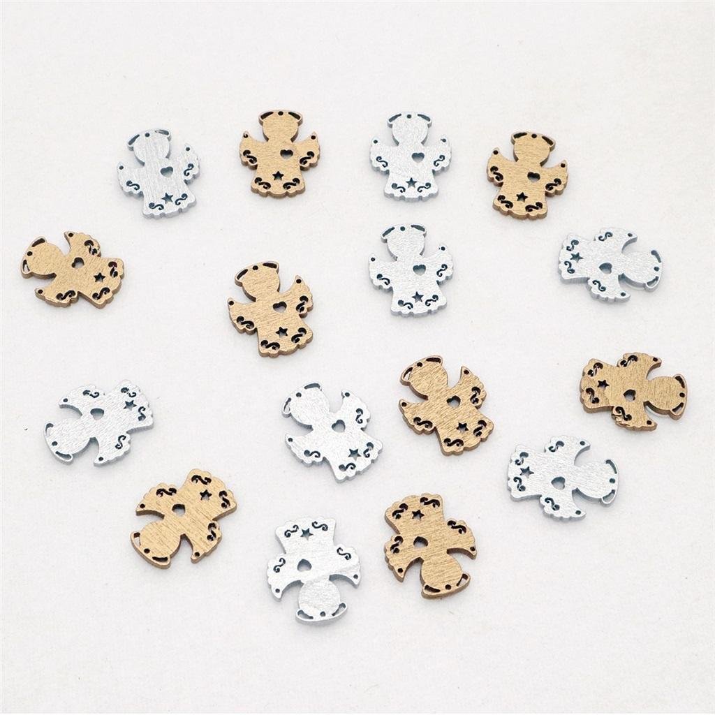 Aniołki z drewna pokryte farbą w kolorze srebrnym i złotym o pięknym metalicznym połysku. Doskonałe uzupełnienie świątecznych i zimowych prac. Każdy aniołek ma samoprzylepną kropkę oraz oczko, przez które można przeciągnąć nitkę, by stworzyć zawieszkę.Ozdobisz nimi kartki okolicznościowe, albumy,...